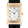 - ジャガールクルトの代表作“レベルソ”コレクション。“レベルソ・デュオ”は表面と裏面でそれぞれの時間を表示します。シルバーダイアルは時分針とスモールセコンド、日付を表示、ブラックダイアルは時分針にデイ/ナイト表示を搭載しています。