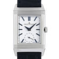 - 時を越えて愛される崇高な逸品レベルソは、ポロ競技中の衝撃からダイアルを守るため「文字盤をひっくり返す」という画期的なアイディアを元に、1930年代に生まれました。2016年発表のこちらは、ケースを3時側にスライドさせることで、明るいシルバーダイヤルから深いブルーの時計に変身し、異なる表情を見せます。反対側のダイヤルを第2時間帯として使うもよし、気分や服装に合わせて切り替えを楽しむもよしと、持ち主次第で使い方の広がる1本です。ジャガー・ルクルト製手巻きムーブメントCal.854A/2を搭載。シルバーダイ