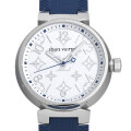 - タンブールは16世紀に南ドイツで作られたドラム型時計、つまり世界初の旅行用時計に由来した、一大コレクションです。そのダイナミックなフォルムに熱狂的なファンは少なくありません。こちらは、ルイヴィトンが伝統的に大切にしてきたモノグラムを文字盤デザインにあしらった、アイコニックな傑作モデル。安心の100m防水、さらに扱いやすいクォーツムーブメントを搭載しており、忙しい毎日を送るビジネスマンにもオススメです。2020年新作。