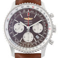 - 1952年の発表から航空時計のシンボルとして輝き続けるモデル“ナビタイマー”。こちらは「パンアメリカンブロンズ」と名付けられたブラウンダイアルが特徴的なモデルです。真っ赤なクロノグラフ針がアクセントになり地味過ぎず派手過ぎず絶妙なバランスとなっております。9時側ケースサイドに限定数の刻印があり、ケースバックからはムーブメントの精巧な動きをご覧頂けます。