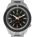 - スプリングドライブGMTのブライトチタンモデルが登場しました。黒文字板に金色のインデックスと針。そして特徴的な赤色のGMT針。4時位置にリューズを備え、アクティブな活動の時にも手首のスムーズな動きを妨げない実用性を重視したデザインです。ブライトチタンの軽さと相まって、大型のケースながらも心地よい装着感を実現しています。