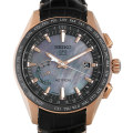 - 世界初のGPSソーラーウォッチ「ASTRON」。全世界40タイムゾーンに対応し、簡単なボタン操作でGPS衛星電波から現在地の正確な位置・時刻情報を取得します。スマートセンサー機能が装備されており、文字盤に太陽光が当たると自動でGPS衛星電波を受信しますので、いつでも正確な時間が文字盤上に表示されます。こちらは世界的に活躍するプロテニスプレーヤー、ノバク・ジョコビッチ選手の限定モデルとなっており、裏蓋に彼のサインが刻印されています。また、ホワイトシェルを黒く塗装した“ダークマザーオブパールダイヤル”が神秘的な雰囲気を演出してくれます。