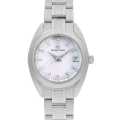 - エレガンス コレクションの26mmの小ぶりなレディースクォーツモデルです。可愛らしいピンクシェルダイヤルは角度によってほのかに輝きを放ちます。ステンレスケースが控えめながらも、ダイヤモンドインデックスが配されているため華やかで上品な印象を与えます。日常生活用強化防水(10気圧)。