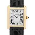 - シンプルな角型ケースにシルバーのダイヤルが配された、タンクシリーズの中でもクールで爽やかなイメージを与えるモデルです。インデックス10時の一部にブランド名を使用しており、細部にまでこだわりが感じられる逸品です。