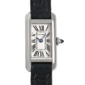 - “アロンジェ”とはフランス語で「伸ばす・長くする」という意味であり、ほかのタンクコレクションに比べて縦に伸びたケースが特徴的なモデルです。こちらはベゼルにダイヤモンドが無いシンプルなタイプですので、シーン問わずお使い頂けます。