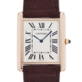 - 角型ケースとシルバーダイアルにプリントされたローマインデックスなど、タンクシリーズの中でもシンプルかつオーソドックスなモデルです。華美な装飾の無いモデルでありながらも、カルティエらしくエレガントで気品に溢れたデザインは、時と場所を選ばずどんな装いにも合わせやすいデザインです。ピンクゴールド製のケースは、日本人の肌馴染みが一番良く映えるとされています。