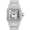 - 同社が発売した初の腕時計であり、パシャやタンクフランセーズに並び人気の高い「サントス」コレクション。アイボリーの文字盤にはカルティエ独特のローマンインデックスがデザインされております。ブルーの針がとてもお洒落で、ベゼルに打ち込まれたビスが個性的です。
