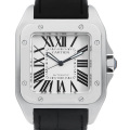 - サントス・ドゥ・カルティエの誕生100周年を記念して創られたアニバーサリーシリーズサントス100。清潔感あるシルバーダイヤルにブラックレザーストラップを組み合わせたカルティエらしい上品なデザインは、フォーマル、カジュアルを問わず様々なシーンに対応出来ます。