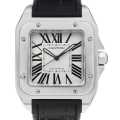 - "サントス・ドゥ・カルティエ"の誕生100周年を記念して創られたアニバーサリーシリーズ"サントス100"。清潔感あるシルバーダイヤルにブラックレザーストラップを組み合わせたカルティエらしい上品なデザインは、フォーマル・カジュアルを問わず様々なシーンに対応出来ます。