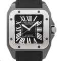 - サントス・ドゥ・カルティエの誕生100周年を記念して創られたアニバーサリーコレクション"サントス100"。こちらのモデルにはダイヤモンド並に硬く、テフロンよりもなめらかなカーボンでステンレスをコーティングする「ADLC加工」と呼ばれる技術が採用されています。