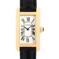- 優美な縦長ケースが特徴のタンクアメリカン。ステンレススティール製のモデルはなく、素材にゴールドを使用したモデルだけがラインアップされているゴージャスなコレクションです。ケースの両サイドは滑らかな曲線になっており、手首におさまりが良く、しっくりと馴染むデザインです。