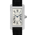 - 1930年代にカルティエのニューヨーク店が生み出したと言われているタンクアメリカン。縦に伸びたスクエアケースが特徴で、他のタンクシリーズとは一線を画す独特なデザインが人気です。シンプルな文字盤に配された上品なローマンインデックスが絶妙のコントラスト。八角形のリューズにはサファイヤが埋め込まれており、シャープな中にエレガントさも兼ね備えている上品な逸品です。