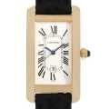 - 1930年代にカルティエのニューヨーク店が生み出したと言われているタンクアメリカン。縦に伸びたスクエアケースが特徴で、他のタンクシリーズとは一線を画す独特なデザインが人気です。シンプルな文字盤に配されたローマインデックスとイエローゴールドのケースが上品な逸品です。