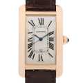 - 優美な縦長ケースが特徴のタンクアメリカン。こちらはK18ピンクゴールドを使用した華やかなモデルです。ピンクゴールドは日本人の肌に馴染む色とされていますので、違和感無くお使いいただけると思います。