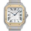 - ルイ・カルティエが飛行家アルベルト・サントス・デュモンの要請を受けて製造した腕時計サントス。初出から100年以上経ちますが、長年カルティエを代表するお洒落なメンズモデルとして愛され続けてきました。そんなサントスが2018年に生まれ変わって登場。「クイックスイッチ インターチェンジャブル」という、付属の替ベルトへの交換を容易にした新システムを採用。また、外装がよりシャープに、エレガンスにブラッシュアップされています。自動巻きCal.1847MC搭載。10気圧防水。