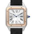 - ルイ・カルティエが飛行家アルベルト・サントス・デュモンの要請を受けて製造した腕時計サントス。当時、円形の懐中時計しか存在しなかった時代に角型という斬新なデザインで発表されました。誕生してから100年以上経ちますが、長年カルティエを代表するおしゃれなメンズモデルとして愛され続けてきました。ステンレススティールケースにピンクゴールドのベゼルを採用。ローマンインデックスといったシンプルながら上品なデザインは、どのような場面にも映えるモデルです。日常生活防水。