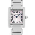 - “タンクフランセーズ”は愛らしくフェミニンな印象を与えるスクエアケースが特徴で、人気の定番モデルとしてラインナップされ続けています。こちらは、2006年に発売されたクリスマス限定モデルです。シルバー文字盤にピンク色でカルティエのロゴである「2C」がプリントされており可愛らしいデザインです。10時のインデックスに“CARTIER”の文字が隠されており、細部にまでこだわりが感じられる逸品です。