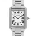 - フラットなスクエアケースにシルバーダイヤルを納めた、タンクシリーズの中でもすっきりとした印象を与えるモデルです。インデックス10時の一部にブランド名を使用しており、細部にまでこだわりが感じられる逸品です。カルティエらしいクール&エレガントなデザインは、コーディネートのポイントとして永く愛用できるので、贈り物にもお勧めです。