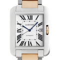 - 2012年に国際高級時計サロン(SIHH)で発表された「タンク アングレーズ」。ケースと一体化したブレスレット、ローマンインデックス、レイルウェイ、ブルースティール針など、至るところにカルティエらしさが表現されたモデルです。リューズをケースの中に組み込むことで、縦のラインにより一層の美しさが増し、ルイ・カルティエが理想としていたデザインに近い時計と言われています。