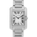 - 2012年に国際高級時計サロン(SIHH)で発表されたタンク アングレーズ。ケースと一体化したブレスレット、ローマンインデックス、レイルウェイ、ブルースティール針など、至るところにカルティエらしさが表現されたモデルです。リューズをケースの中に組み込むことで、縦のラインにより一層美しさが増し、ルイ・カルティエが理想としていたデザインに近い時計と言われています。
