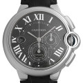 - 2011年発表、“バロンブルー クロノグラフ”。フランス語で「青い風船」というネーミングが示す通り、大粒ブルーサファイヤを埋め込んだ球体リューズや全体的に僅かな膨らみを帯びたケースが特徴的で、クラシカルでありながら優雅な雰囲気を印象付けています。カルティエらしい端整なデザインと高い視認性、そして上品なディテールを備えながらも、日常使いに耐えうるタフネスさも備えているため、オンオフを問わず活躍してくれるオールマイティーなモデルです。