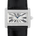 - フランス語で「長椅子」を意味する”ディヴァン”。その名の通り、時計の中でも珍しい横長のケースを採用しています。独特な形状のうえ、さらにはベゼル全体・尾錠に贅沢にダイヤモンドを配し、一際目を惹く存在感溢れるラグジュアリーなモデルに仕上がっています。ケース幅に合わせた幅広の革ベルトも、まるでバングルのようにお洒落にご着用いただけます。