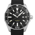 - アルミニウム製ベゼルとクォーツ・ムーブメントを搭載したアクアレーサーです。300m防水、逆回転防止型ベゼル、ねじ込み式リューズ、潜水中に最適な視認性を得るためのインデックスと針の幅広夜光マーカーなど、過酷な状況下にも耐えうるダイバーズウォッチです