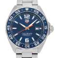 - F1のテクノロジーにインスピレーションを得たタグホイヤーのフォーミュラ1コレクション。カジュアルなスタイルに、F1という極限下の環境でも活躍できる機能性を兼ね備えています。サンレイ加工が施されたブルーダイアルにアルミニウム製の回転ベゼル、そしてオレンジのセンターセコンド針のアクセントが印象的な仕上がりとなっています。2016年発表。