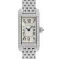 - アロンジェとはフランス語で「伸ばす・長くする」という意味であり、ほかのタンクコレクションに比べて縦に伸びたケースが特徴的なモデルです。小振りなケースサイドにダイヤモンドがセッティングされたデザインが魅力で、ドレッシーな装いにピッタリとはまる逸品です。