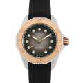 - ダイヤモンドとマザー・オブ・パールの組み合わせが上品で、200m防水でスポーツやアウトドアにも対応しており、ラバーストラップと調整リンクでフィット感抜群です。エレガンスとアクティブさを両立したレディースウォッチとして、フォーマルにもカジュアルにも使える万能な1本です。