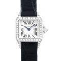 - サントスの誕生から100周年の節目となる2005年に発表されたドゥ モワゼルシリーズ。人気モデルとして知られるサントスとパンテール双方から意匠を取り入れたフェミニンなモデルです。惜しまれつつも廃盤となったミニパンテールの後継モデルとも言われています。ホワイトゴールドのブレスとダイヤがセッティングされたベゼルのコンビネーションは、時計としてだけでなくアクセサリーとしても淑女の手元を彩ります。