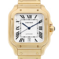 - ルイ カルティエが飛行家アルベルト サントス デュモンの要請を受けて製造した腕時計サントス。初出から100年以上経ちますが、長年カルティエを代表するおしゃれなメンズモデルとして愛され続けてきました。そんなサントスが2018年に生まれ変わりました。こちらは、その記念すべき第一作目の8Kイエローゴールドモデルです。クイックスイッチインターチェンジャブルという、付属の替ベルトへの交換を容易にした新システムを採用。また、外装をよりシャープに、エレガンスにブラッシュアップされています。自動巻き1847 MC搭載。10気圧防水。