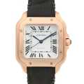 - ルイ・カルティエが飛行家アルベルト・サントス=デュモンから「飛行中に見やすい腕時計を」という要請を受けて製造した腕時計サントス。 円形の懐中時計しか存在しなかった時代に角型という斬新なデザインで発表されました。初出から100年以上経ちますが、長年カルティエを代表するおしゃれなメンズモデルとして愛され続けてきました。こちらはピンクゴールドにシルバーダイアル、ローマンインデックスといったシンプルながら上品なデザインでどのような場面にも映えるモデルです。