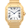 - 『ルイ カルティエ』が飛行家『アルベルト サントス デュモン』の要請を受けて製造した腕時計”サントス”。初出から100年以上経ちますが、長年カルティエを代表するお洒落なメンズモデルとして愛され続けています。LMサイズのこちらはムーブメントに自社製自動巻きキャリバー1847MCを搭載。素材にイエローゴールドを採用し上品な高級感を漂わせています。