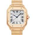 - カルティエが1904年に初めて発表したウォッチコレクション『サントス・ドゥ・カルティエ』は、ブランドの象徴ともいえる時計です。ベゼルに配されたビスや、柔らかいカーブを描くダイアル、そしてスクエア型のケースは、カルティエならではのデザインが随所に感じられる要素となっています。また、ケースからブレスレットへと自然に流れるラインは、デザインの一体感を高め、エレガントな印象を与えます。このモデルは、ケースとブレスレットの両方がピンクゴールドで仕上げられており、そのラグジュアリーさが際立つ特別な一本です。