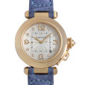 - 既に生産終了となったパシャ32mmの自動巻きモデルです。インデックスに8ポイントのダイヤが配され、ダイアルにはギョーシェが施されるなど現行モデルにはない仕上がりです。レディースモデルとしては少し大きめなサイズのため、腕をより華奢に見せてくれます。ゴールドとダイヤで彩られた華やかなフォルム、コーディネートのアクセントに是非お役立てください。