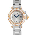 - カルティエウォッチの中で“タンクフランセーズ”と人気を二分する“パシャ”コレクション。 従来の女性の定番とされていたパシャシリーズより小さめの27mmサイズの“ミスパシャ”が登場した事により、より多くの女性がパシャシリーズをお使い頂けるようになりました。こちらはピンクゴールドとステンレスのコンビ素材モデルです。 ピンクゴールドのベゼルにはダイヤを隙間なく並べており、今までのモデルには見られなかったデザインと言えます。ダイヤモンドの輝きにより高級感を漂わせながらも、可愛らしく上品な印象です。数量限定モデルの為、流通量が少なく非常に入手が困難なモデルになります。