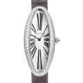 - 楕円形のケースは、カルティエの美学を象徴する「一筆書きのようなエレガントなライン」でクラシックとモダンが融合した造形美です。ダイヤモンドが贅沢にセッティングされており、時計としてだけでなくハイジュエリーとしての価値も高くなっております。1912年のベニュワールの精神を受け継ぎ、カルティエの時計製造技術と芸術性が融合した1本です。