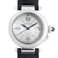 - カルティエウォッチの中でタンクフランセーズと並んで人気の高いパシャコレクション。こちらは、光の加減で様々な表情を見せる美しいシルバーダイアルを採用したモデルです。本格的な機能を持ちつつ、アクティブかつ重厚な印象を与えるスタイリングが人気です。リューズプロテクターとリューズにシンセティックブルースピネルを備え、大人らしいエレガンスなデザインに仕上がっています。
