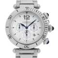- カルティエウォッチの中でタンクフランセーズと並んで人気の高いパシャコレクション。本格的な機能を持ちつつ、アクティブかつ重厚な印象を与えるスタイリングが人気のモデルです。41mmのステンレススティールケースには自動巻きCal.1904CH MCを搭載。リューズプロテクターとリューズにシンセティックブルースピネルを備え、大人らしいエレガンスなデザインに仕上がっています。100m防水。