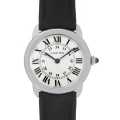 - シンプルなラウンドケースが人気のロンド ソロ ドゥ カルティエ。至る所にカルティエデザインの特徴が生かされた、クラシカルなフォルムが魅力の時計です。ブルースピネルがセッティングされたリューズには上品な美しさがあり、青く焼かれたブルースティール針とシルバーダイヤルのコントラストは実に見事です。