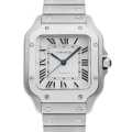- カルティエを代表する"サントス"ウォッチ。飛行士であるアルベルト・サントス・デュモンから「飛行中に見やすい腕時計を」という意見から生まれた"サントス"は、 円形の懐中時計しか存在しなかった時代に角型という斬新なデザインで発表されました。2018年発表のこちらは、ステンレススチールケースにシルバーダイアル、ローマインデックスといったシンプルながらどのような場面にでもお使い頂けるデザインです。10気圧防水。