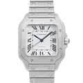- カルティエを代表するモデル"サントス"。飛行士である『アルベルト・サントス・デュモン』から「飛行中に見やすい腕時計を」という意見から生まれた"サントス"は、 円形の懐中時計しか存在しなかった時代に角型という斬新なデザインで発表されました。ステンレススティールケースにシルバーダイアルとローマインデックスといった、洗練されたシンプルな仕上がりはどのような場面でも活躍できるデザインです。