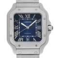 - ルイ・カルティエが飛行家アルベルト・サントス・デュモンの要請を受けて製造した腕時計サントス。初出から100年以上経ちますが、長年カルティエを代表するおしゃれなメンズモデルとして愛され続けてきました。こちらはそのサントスの2019年発表モデルとなります。クイックスイッチインターチェンジャブルという、付属の替ベルトへの交換を容易にしたシステムを引き続き採用し、アルベルト・サントス=デュモンが生涯かけて挑んだ空を彷彿とさせるグラデーションブルーの文字盤が印象的なモデルです。 自動巻き1847 MC搭載。10気圧