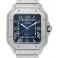 - ルイ・カルティエが飛行家アルベルト・サントス・デュモンの要請を受けて製造した腕時計サントス。初出から100年以上経ちますが、長年カルティエを代表するおしゃれなメンズモデルとして愛され続けてきました。こちらはそのサントスの2019年発表モデルとなります。クイックスイッチインターチェンジャブルという、付属の替ベルトへの交換を容易にしたシステムを引き続き採用し、アルベルト・サントス=デュモンが生涯かけて挑んだ空を彷彿とさせるグラデーションブルーの文字盤が印象的なモデルです。 自動巻き1847 MC搭載。10気圧防水。