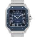 - ルイ・カルティエが、飛行家アルベルト・サントス・デュモンの要請を受けて製造した腕時計"サントス"。初出から100年以上経ちますが、長年カルティエを代表するお洒落なメンズモデルとして愛され続けてきました。こちらは、ブルーのPVD加工ベゼルとストライプの溝入りブルーダイアルが爽やかなモデルです。ベルトへの交換を容易にしたクイックスイッチインターチェンジャブルシステムを引き続き採用しています。自動巻き1847MC搭載。10気圧防水。