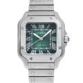 - ルイ・カルティエが飛行家アルベルト・サントス・デュモンの要請を受けて製造した腕時計サントス。初出から100年以上経ちますが、長年カルティエを代表するおしゃれなメンズモデルとして愛され続けてきました。こちらはそのサントスの2023年モデルです。クイックスイッチインターチェンジャブルという、付属の替ベルトへの交換を容易にしたシステムを引き続き採用しています。パワーリザーブ約40時間の自動巻き1847MC搭載。10気圧防水。
