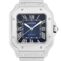 - カルティエを代表する”サントス”ウォッチ。飛行士である『アルベルト サントス デュモン』から「飛行中に見やすい腕時計を」という意見から生まれたサントスは、 円形の懐中時計しか存在しなかった時代に角型という斬新なデザインで発表されました。リューズのブルースピネルとグラデーションブルーダイアルが美しく調和した上品なデザインです。自動巻きムーブメント1847 MC搭載。10気圧防水仕様。
