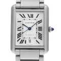 - 1970年代~1980年代に製造された往年の名作マスト ドゥ カルティエ。2021年に復刻を果たしました。 「マスト」とカルティエ自身が称するように、エレガントな薄型ケースに丸みを帯びたラグ、そしてローマンインデックスを備えた上品な文字盤はこれぞタンク。自動巻きムーブメントを搭載しつつも、厚みは8.4mmに抑えられたのも特筆すべき点です。ムーブメントはカルティエの基幹機としてお馴染みのキャリバー「1847 MC」。パワーリザーブ約40時間。日常生活用防水。