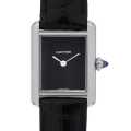 - 「マスト」とカルティエ自身が称するように、エレガントな薄型ケースに丸みを帯びたラグ、そして飽きの来ないシンプルなブラック文字盤はシーンを選ばずご着用できます。クォーツムーブメントを搭載しているため、ケース厚は6.6mmに抑えられました。日常生活防水を維持します。